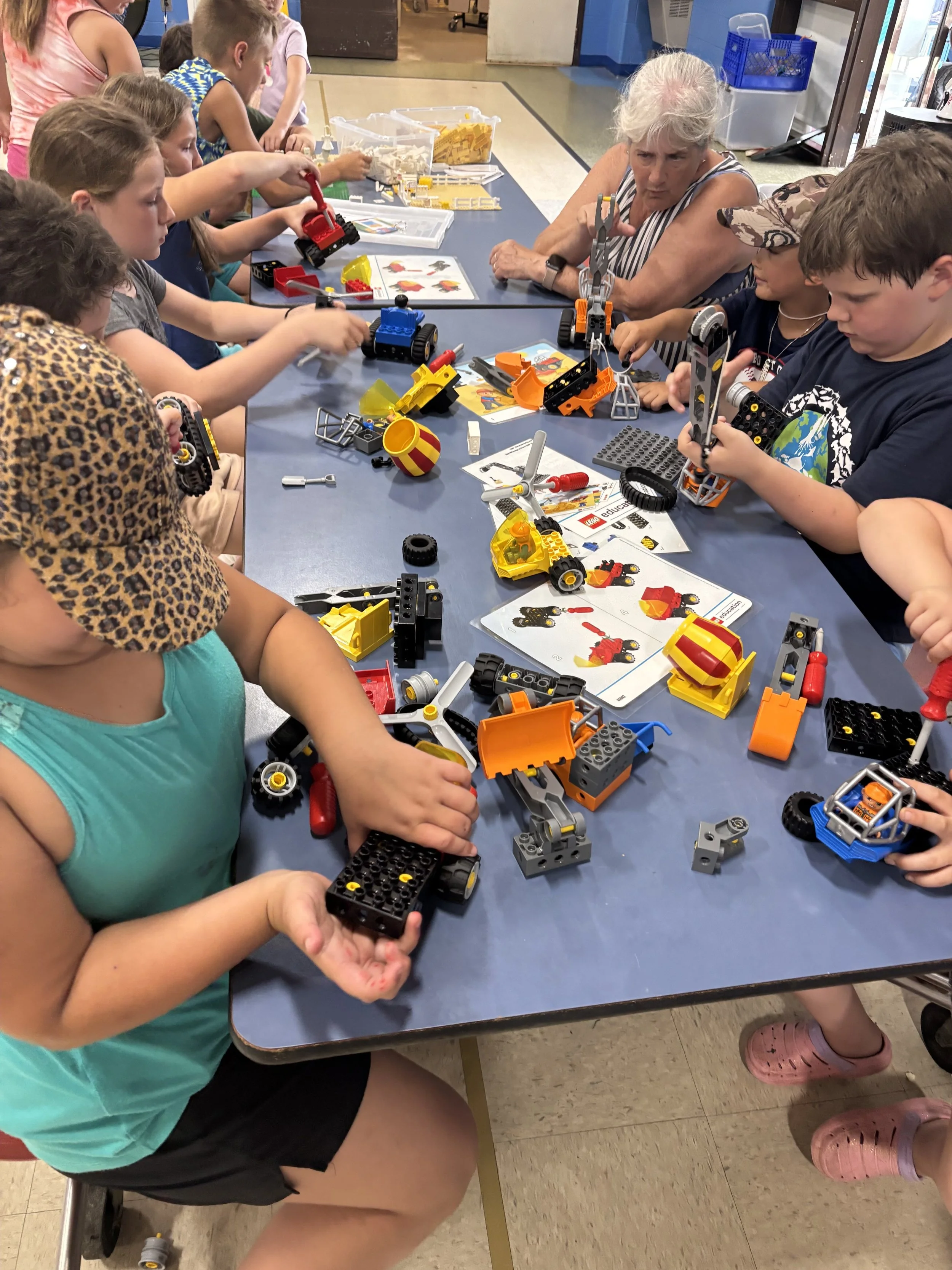 Explore engineering concepts using LEGO kits and the Imagination Playground’s small blue blocks. The kit gives children the opportunity to explore simple machines, balance, as well as design and build.